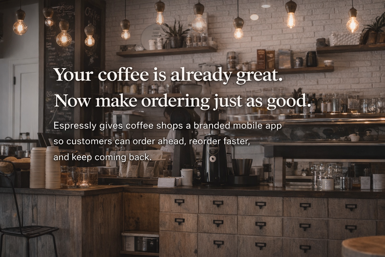 Espressly gives coffee shops a branded mobile app so customers can order ahead, reorder faster, and keep coming back.